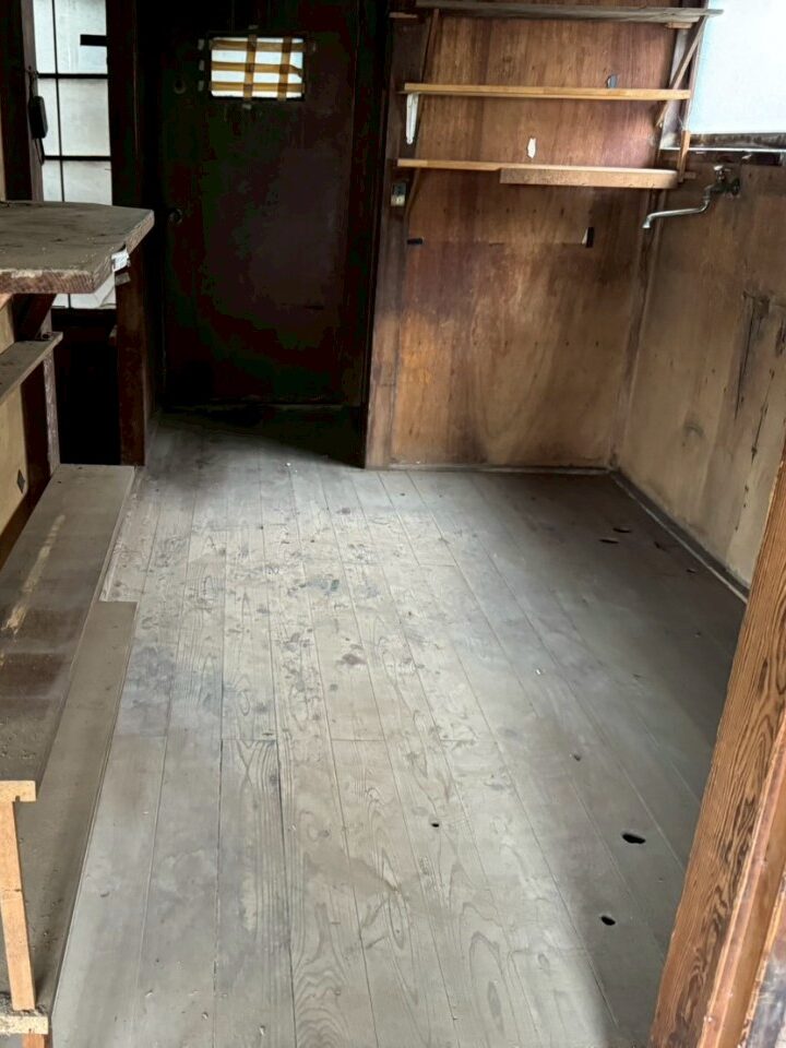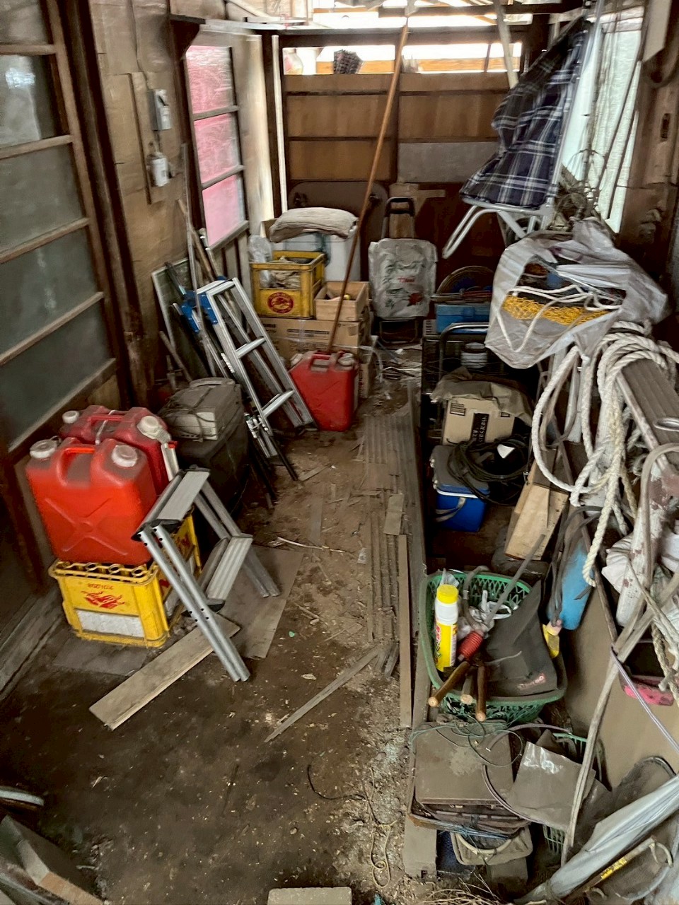 加えて、建物前には木造の倉庫があり、搬出導線が非常に狭いため、スムーズな作業が難しい状況。
