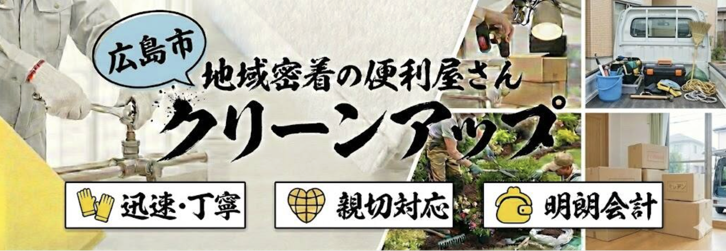 便利屋クリーンアップは、広島市を中心に不用品処分・片付け・引っ越しなど幅広いサービスを提供している地域密着型の業者です。