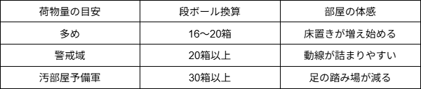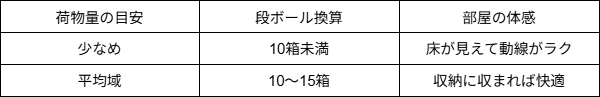 荷物が多いかどうかって、感覚だとブレます。そこで目安として分かりやすいのが段ボール換算です。
