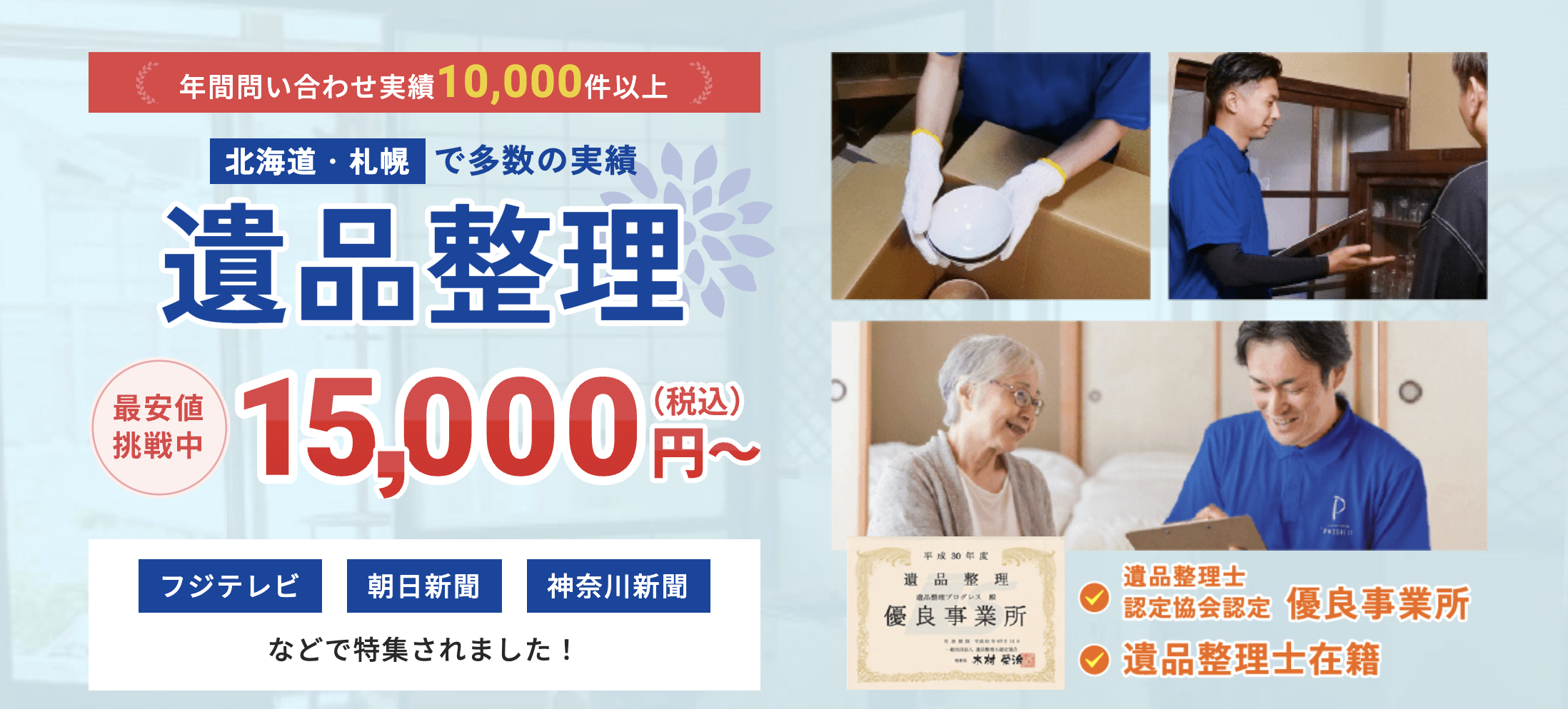北海道内全域に対応しており、遺品整理士認定協会の優良事業所に認定されています。