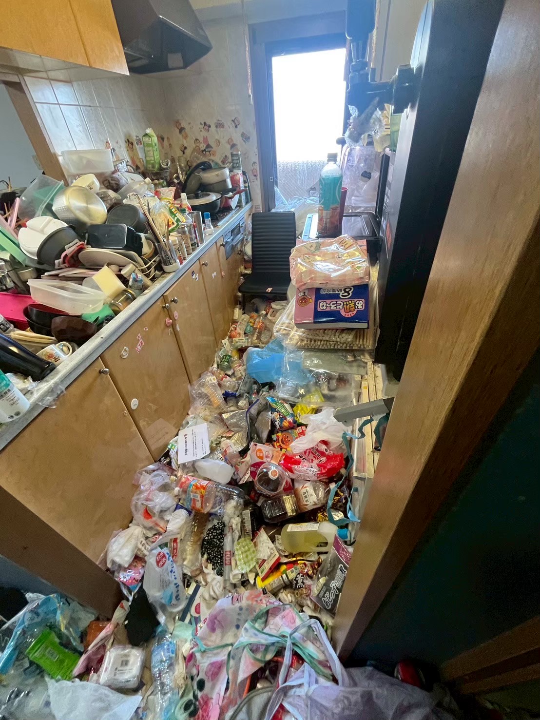 お部屋全体には生活ゴミが広がり、キッチン周辺を中心に害虫の発生も確認されていました。